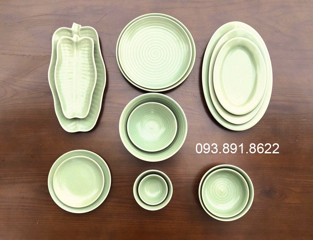 Bát Đĩa Men Xanh Chuối - Mẫu 4