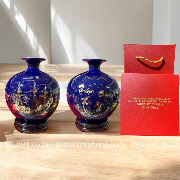 Bình Gốm Hút Lộc Thuận Buồm Xuôi Gió Vẽ Vàng Kim - Mẫu 11