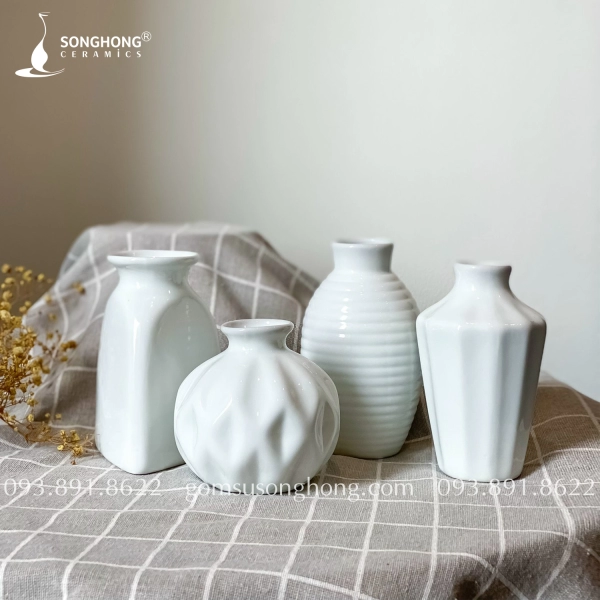 Bộ Bình Hoa Mini Sứ Trắng Decor - Mẫu 6