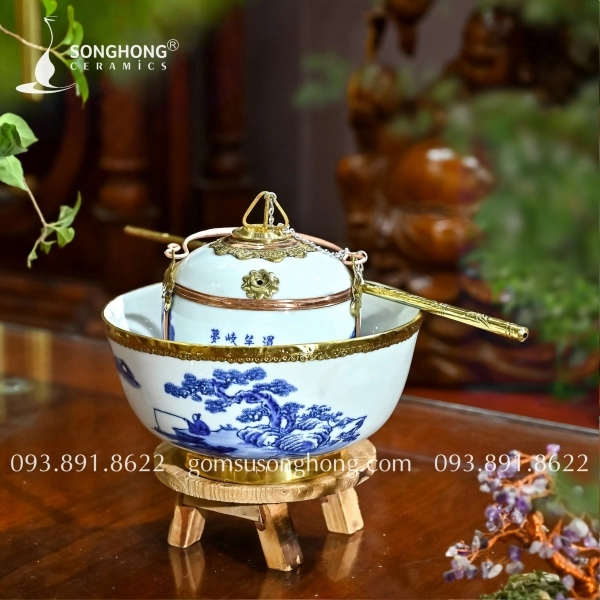 Bộ Điếu Bát Gốm Bọc Đồng - M06