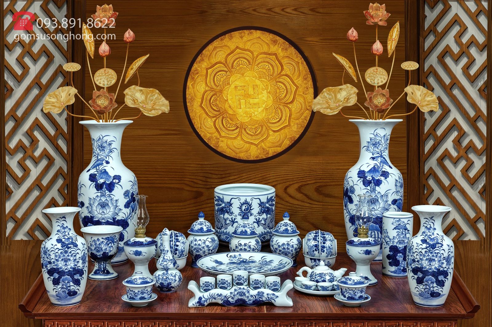 Bộ Đồ Thờ Men Rong Cổ Truyền - Mẫu 4