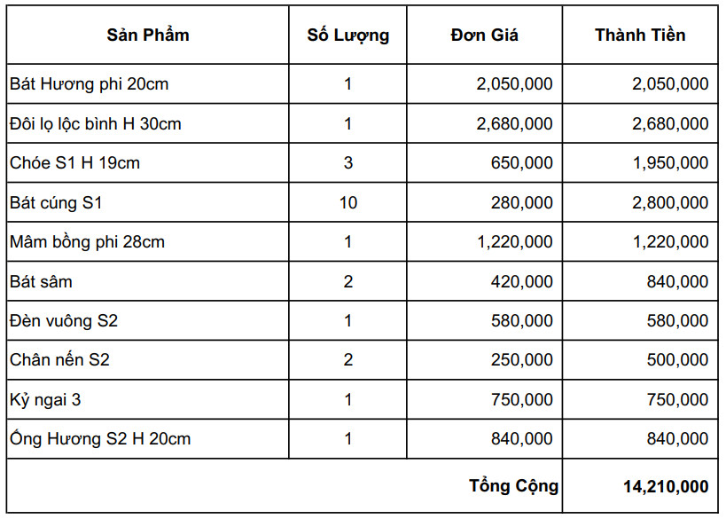 Bộ Đồ Thờ Men Rong Vẽ Vàng Kim - Mẫu 4