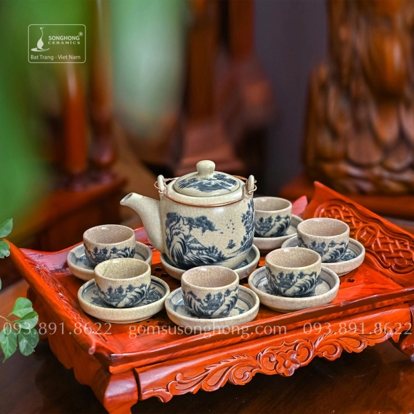 Bộ Trà (Ấm Chén) Men Rạn Vẽ Tay - Mẫu 1
