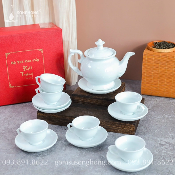 Bộ Trà (Ấm Chén) Sứ Trắng 550ml - Mẫu 7