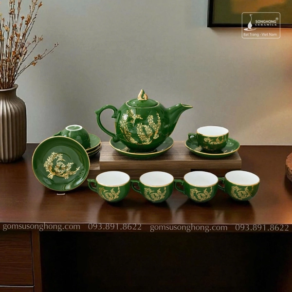 Bộ Trà Chữ Lộc Hoa Đào Vàng Kim - Mẫu 1