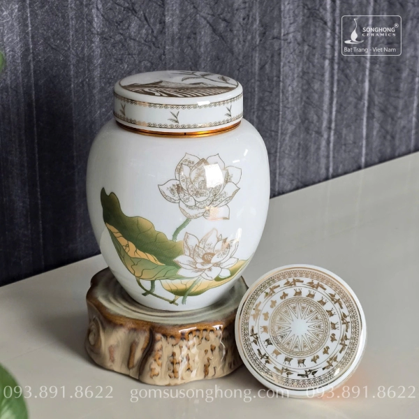 Hũ Sứ Đựng Trà 480ml Sen Xanh