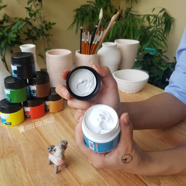 * Màu acrylic không khuyến khích sử dụng để trang trí cho các sản phẩm bằng đất mà phải nung ở nhiệt độ cao, sản phẩm sẽ bị bay màu.