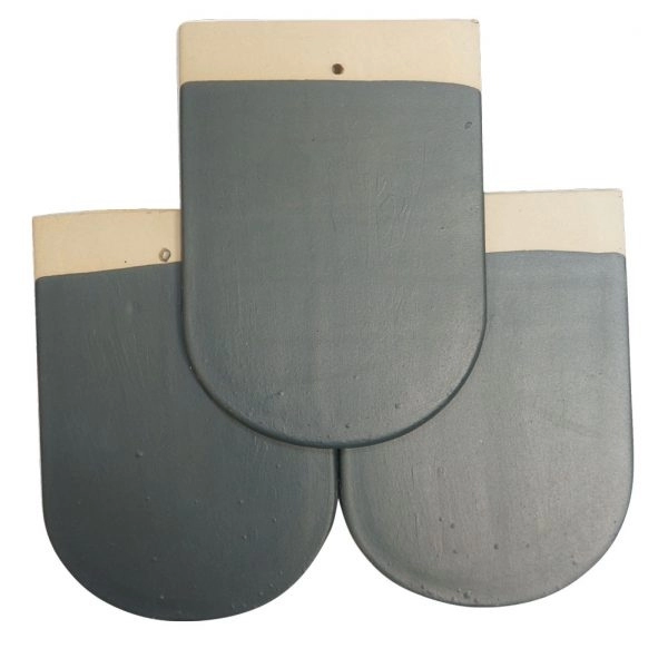 Ngói văn miếu tròn màu xanh ghi được sử dụng tại các biệt thự, khách sạn, nhà hàng… Mái lợp 70 viên/m², mỗi viên nặng 0.4 kg bằng sứ tráng men.