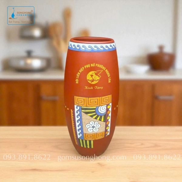 Bình Hoa Gốm Đất Đỏ Khắc Màu Nổi - Mẫu 11