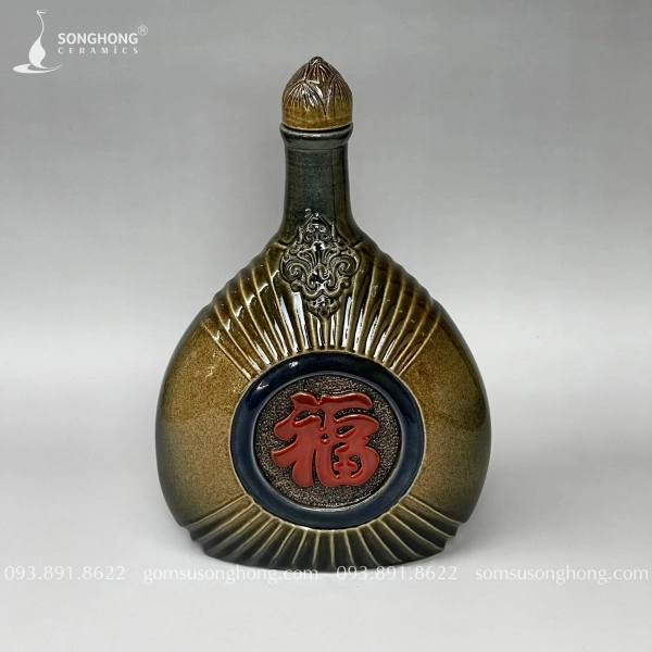 Bình Rượu Gốm Khắc Nổi 750ml - M1
