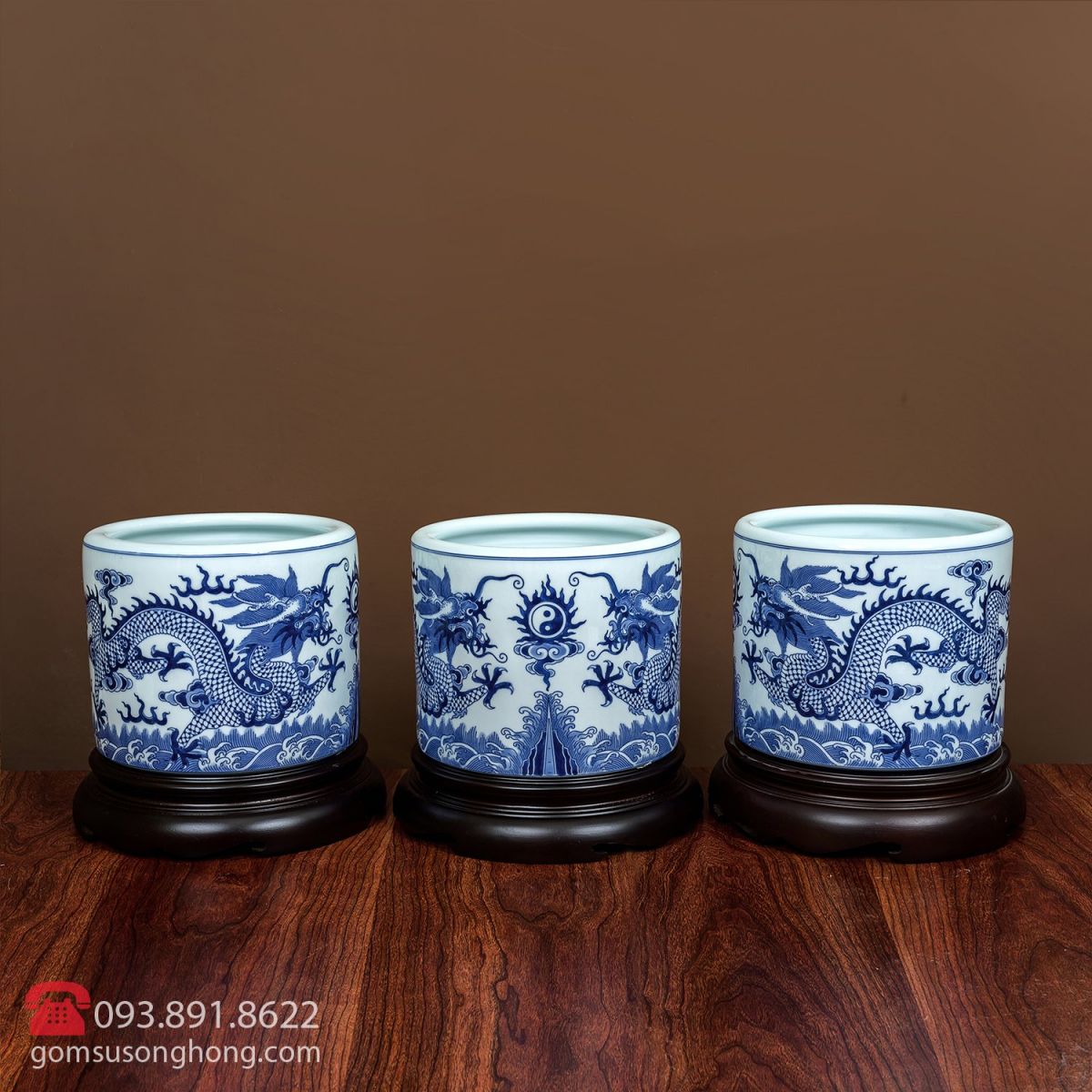 Bộ Bát Hương Vẽ Rồng - Men Rong Cổ Truyền