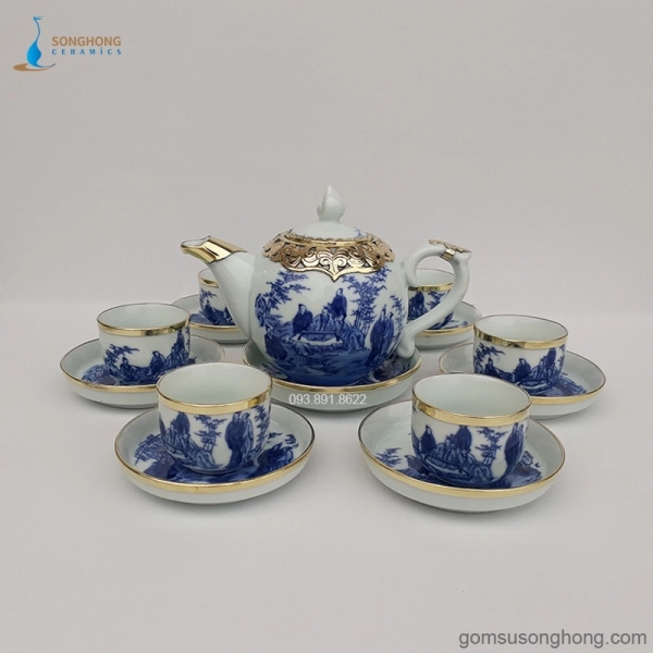 Bộ Trà (Ấm Chén) Vẽ Tay Truyền Thống - Bọc Đồng - Mẫu 5