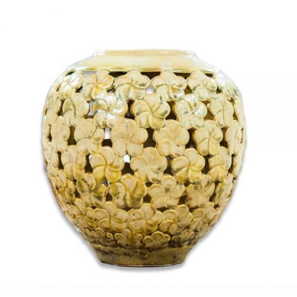 Đèn Ngàn Hoa đặt sân vườn bằng sứ màu vàng kết tinh được sử dụng nhiều tại sân, vườn. Họa tiết hoa được chế tác tinh xảo, sống động bởi đôi tay làn nghệ nhân Bát Tràng. Đèn có 3 kích cỡ cho quý khách thoải mái lựa chọn.