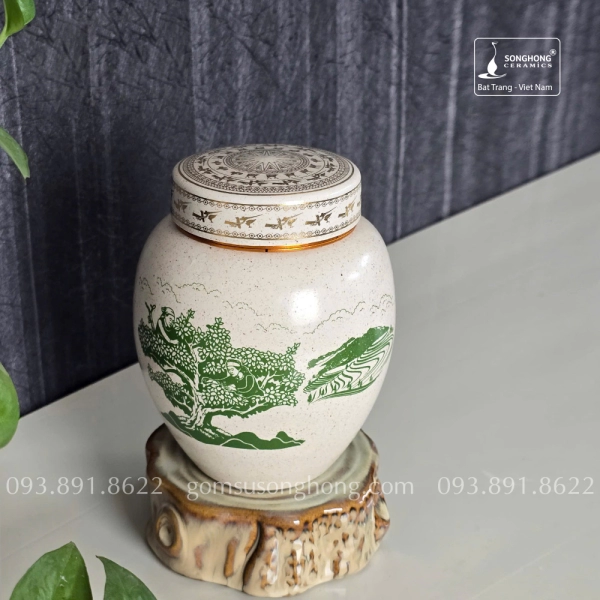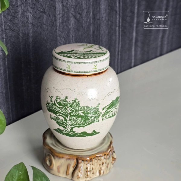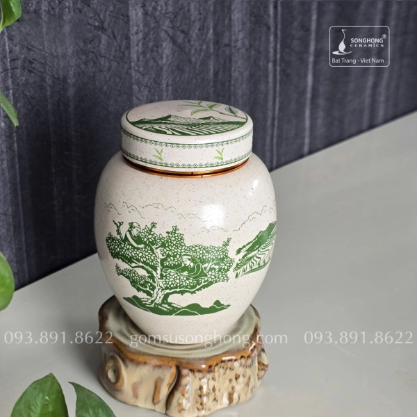 Hũ Sứ Đựng Trà 480ml Men Tiêu Cảnh Trà Cổ Thụ